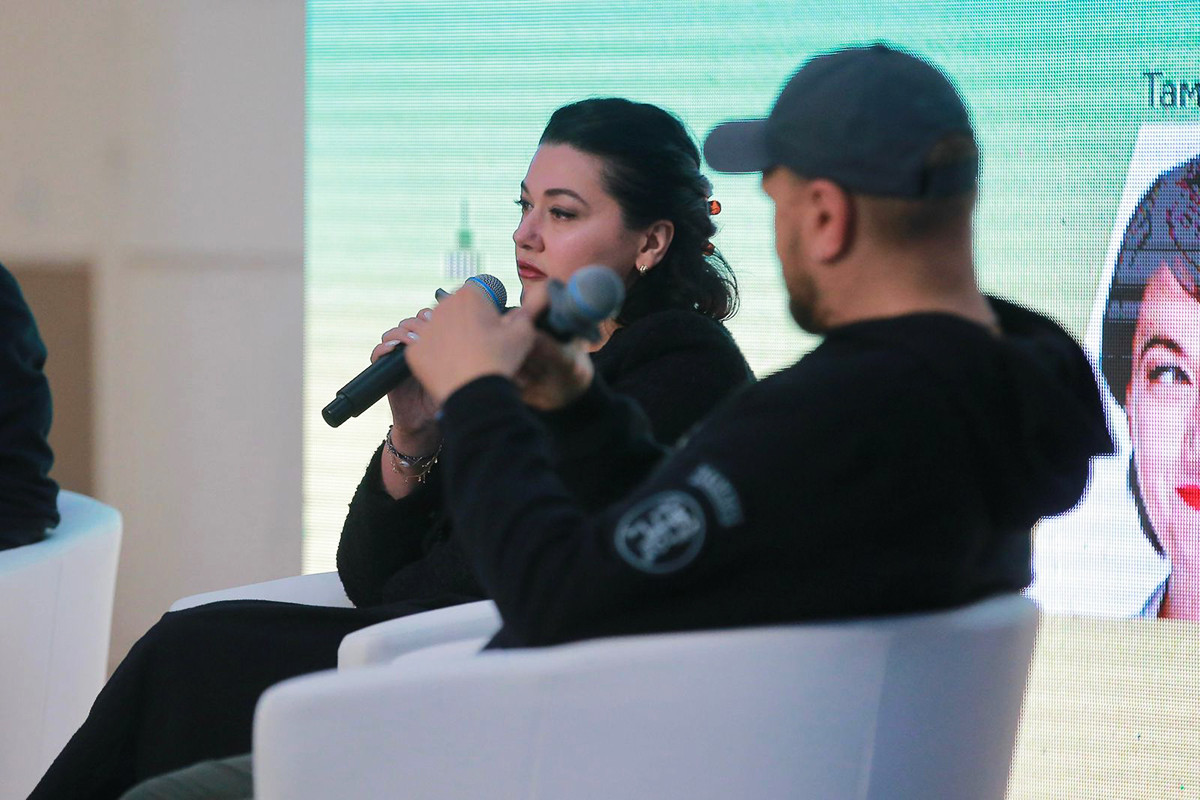 Учасники дискусії Дмитро Хоркін, Тамара Гусейнова й модератор Олександр Положинський
