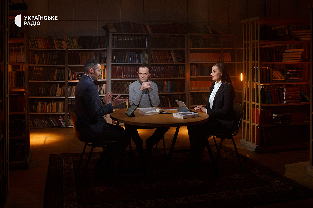 Ведучий проєкту Сергій Стуканов, історик Ярослав Затилюк, ведуча проєкту Наталія Соколенко