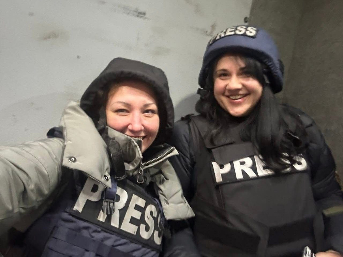 Анастасія Галасюк з телеоператоркою Ольгою Мілашич у Покровську, грудень 2024 року