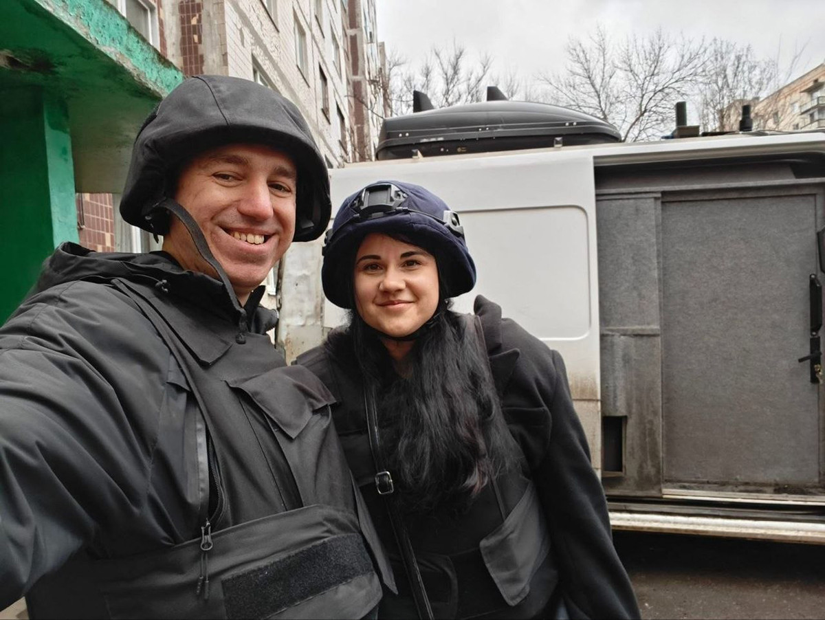 Анастасія Галасюк з відеографом Олександром Буряком у Дружківці, березень 2026 року