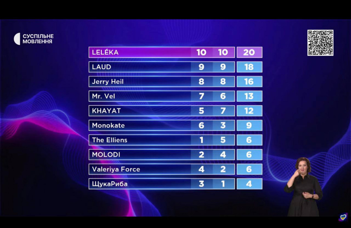 Вона отримала 20 балів: 10 балів від журі та 10 балів від глядачів.