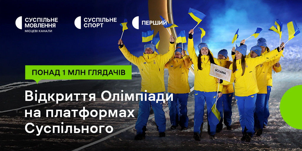 «Церемонію відкриття XXV Олімпійських ігор, яка відбулася 6 лютого, на Першому каналі Суспільного, телеканалі “Суспільне Спорт” і місцевих каналах Суспільного побачили 720 тис. глядачів віком від 4 років. Спільна частка аудиторії телетрансляції, що тривала 3,5 години, становила 5,81% (аудиторія 18+ років, міста 50 тис.+ мешканців). Усі покази церемонії відкриття (прямий ефір + повтор на телеканалах “Суспільне Спорт” і місцевих каналах Суспільного у суботу, 7 лютого) побачили 993 тис. унікальних телеглядачів віком від 4 років», — ідеться в повідомленні.