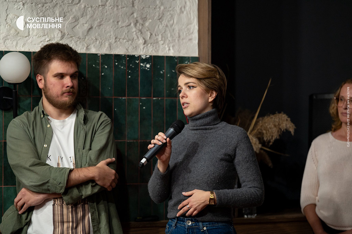 Модератор заходу Олексій Мандзій, продюсерка фільму Катерина Феленюк та режисерка Вікторія Задорська.