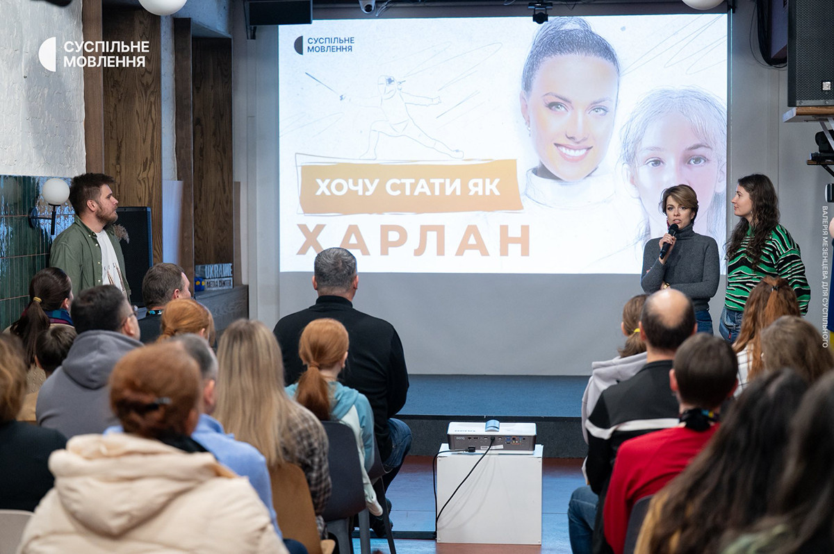 4 грудня в «Медіацентрі Україна» відбувся показ документального фільму «Хочу стати як Харлан». У заході взяли участь знімальна команда та герої стрічки. Стрічка, створена командою Суспільного, розповідає про два покоління спортсменок, про їх шлях та мрію про перемогу.